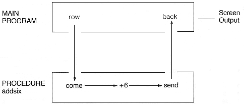 9. A main program can place information in 'pigeon-holes' by means of LET or READ statements. These 'pigeon holes' can be accessed by the procedure. Thus the procedure uses information originally set up by the main program.