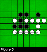 4 The number of flipped chips in one turn is only limited by the size of the gameboard. If in figure 4, white decides to place his/her chip in square A, the result will be that of figure 5.
