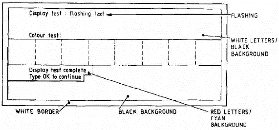 3.2.2 Check that the colours on the monitor are the same as those on the TV; check that the flashing text is satisfactory; type OK to proceed.