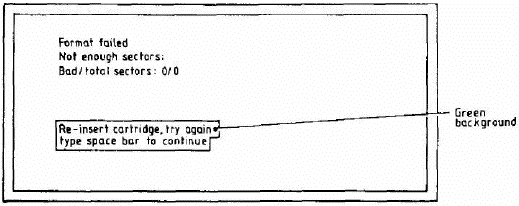 3.11.2 Re-insert the cartridge in MDV1 or MDV2 as appropriate and press the space bar. If the test fails a second time the following message is displayed: