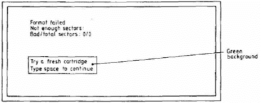 3.11.3 Insert a new cartridge in MDV1 or MDV2 as appropriate and press the space bar. If the test fails again the message in para 3.11.1 is repeated; re-insert the cartridge and press the space bar.