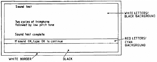 NOTE: On pressing the space bar two bleeps should be heard and the following message displayed in green:
